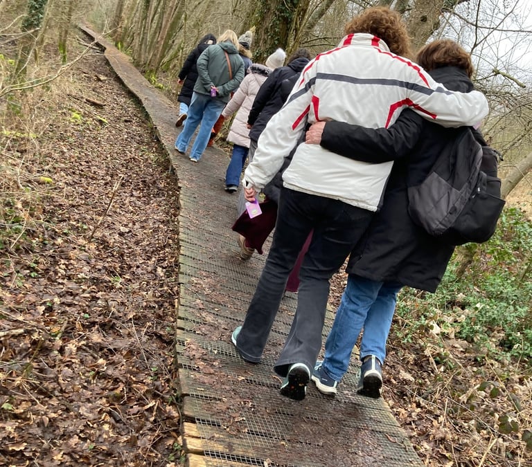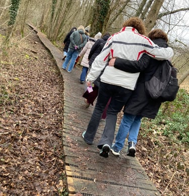 Al rouwend wandelen. Samen op weg gaan, een wandeling met lotgenoten en medereizigers. Mensen, die rouwen. Mensen, die verlies ervaren en verdriet dragen omwille van heel veel redenen. Om te luisteren naar elkaar en te vertellen aan elkaar of om gewoon in stilte naast elkaar te wandelen, voelend dat je niet alleen bent.