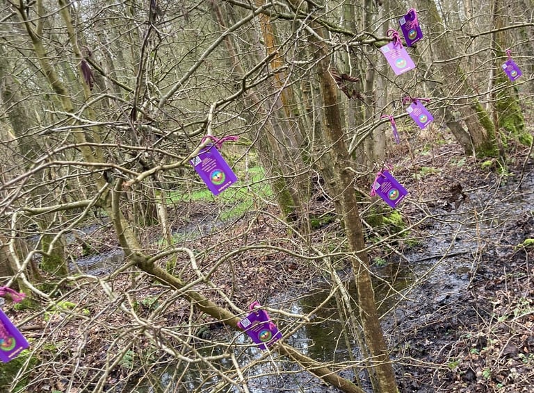 Bij de start krijg je een kaartje mee, waarop een zinnetje staat, om over na te denken, te voelen of uit te wisselen met je wandelgenoot. Je komt alleen of je brengt iemand mee. En we wandelen gedurende een uur tot anderhalf uur. We stoppen halverwege om vrijblijvend iets te delen of om je kaartje in een boom te hangen, helemaal hoe je het zelf wil.