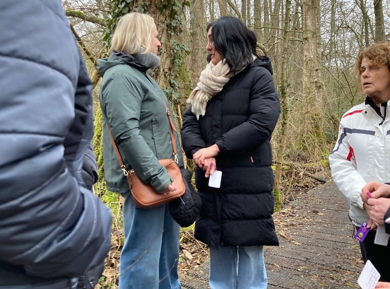 Noëlla is mama van Sander. Een toffe jongen, die slechthorend en slechtziend is. Om hem te helpen met het verruimen van zijn blik op de wereld zijn ze samen een praatcafé begonnen. Een café waar iedereen welkom is met of zonder beperking. Ook als de beperking niet zichtbaar is, wordt er naar je geluisterd. Vandaar dat we onze handen in elkaar slaan. Wandelen en nadien even bijpraten op een plek, die niet perfect is, maar o zo warm.